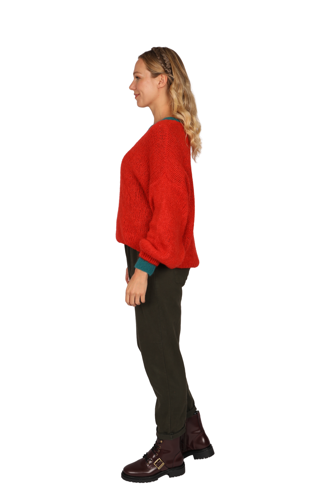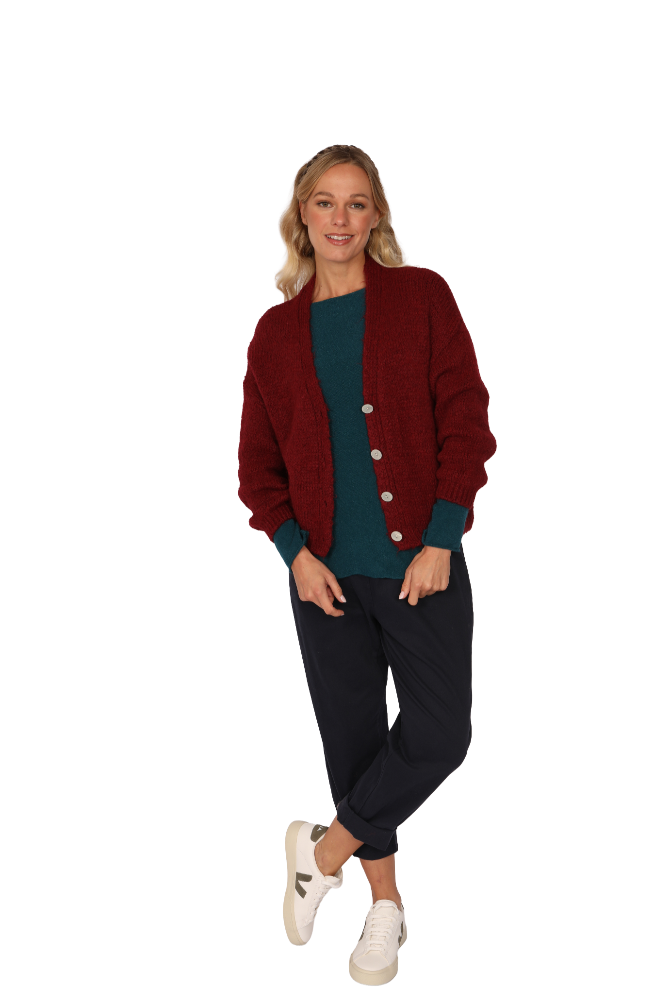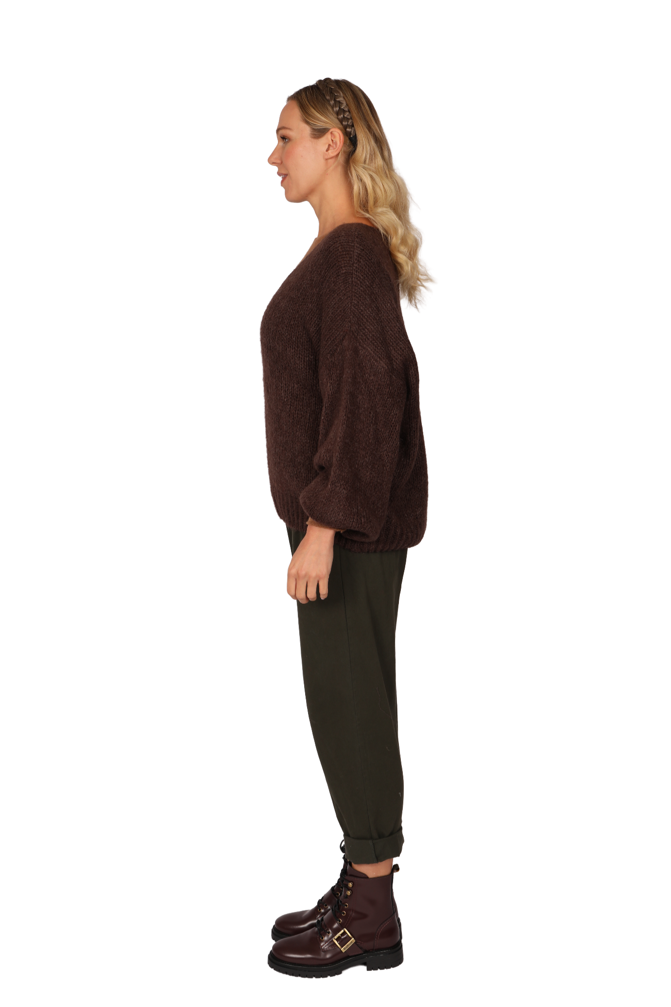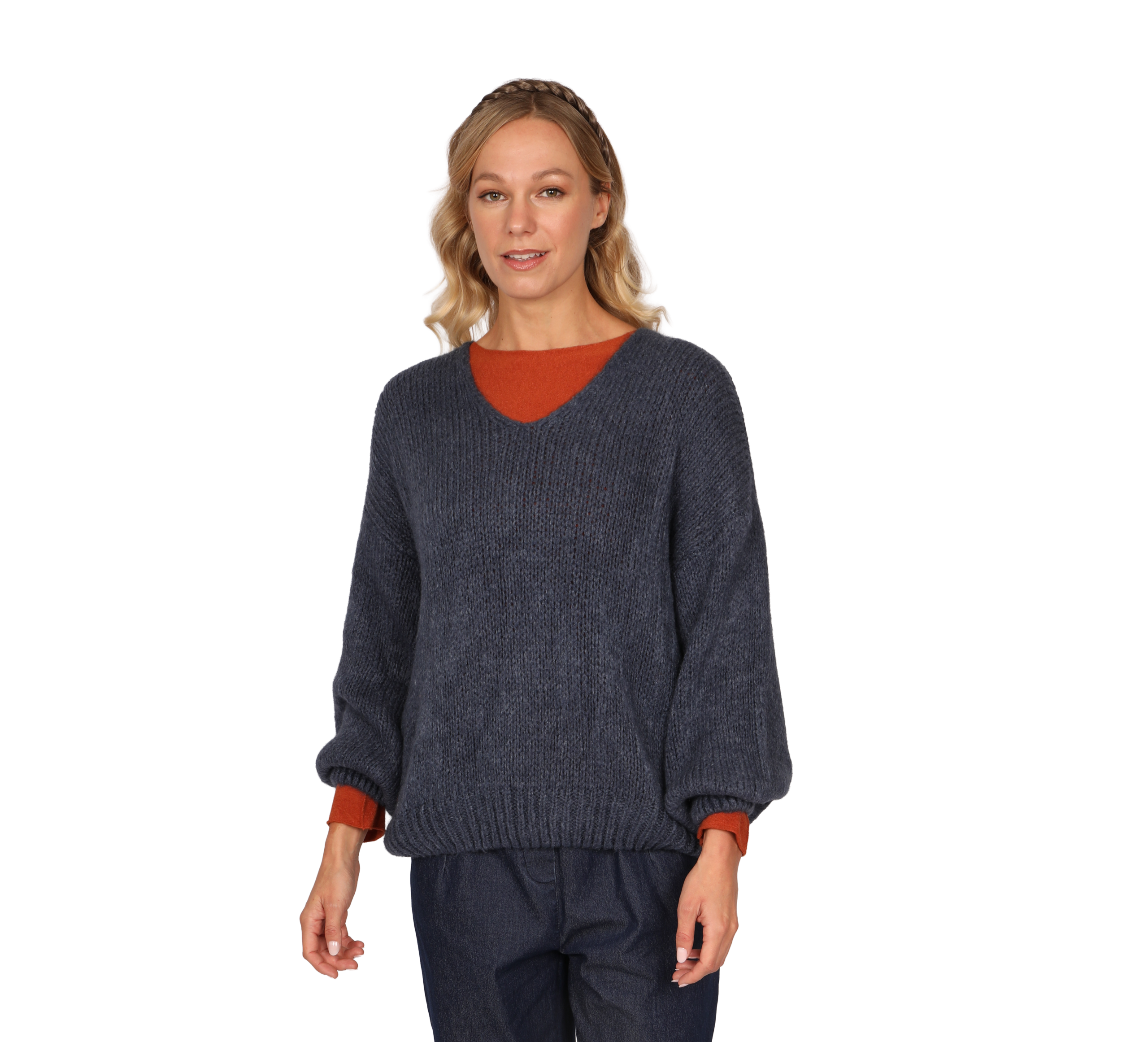Sadie is an alpaca-wool blend jumper creating an extra-soft and fluffy feel, whilst also being machine washable. This is our Over sized chunky knit classic, Designed V Neck with long  sleeve finished with a Ribbed Hem and cuffs.